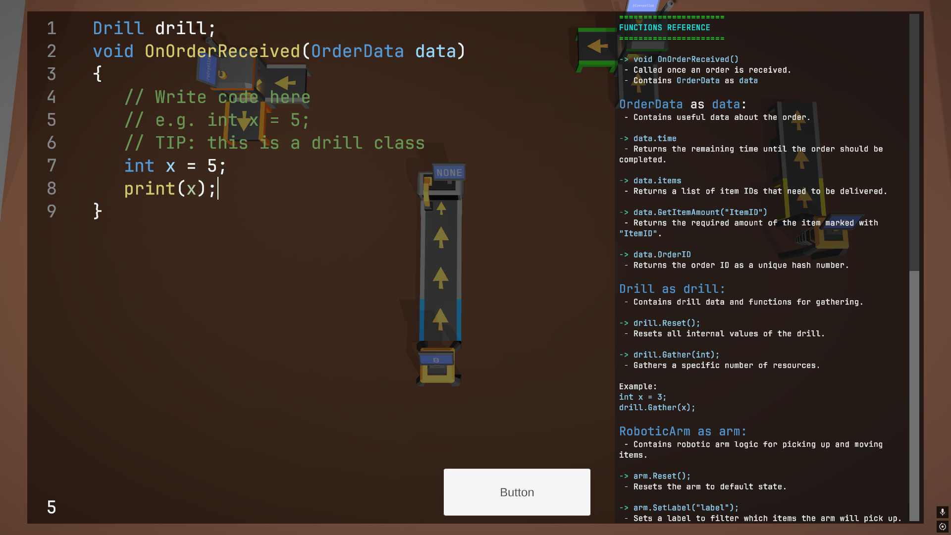 Передвегать кубы при помощи конвееров и других механизмов. Пиши код что бы автоматизировать процесс. Выполняй заказы и наслаждайся!